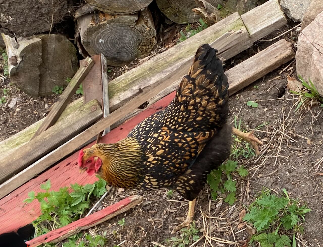 They had a small flock of chickens, including this very handsome one. She’s a Golden Laced Wyandotte, and doesn’t she look the part? They do collect the eggs, which go into the farm shares. There are two cats, but they and the chickens coexist peacefully. The farm offers lessons in stewardship, solar electric systems, soil workshops, and canning workshops, but unfortunately not one on coexistence. If the cats and chickens offered it, I can think of lots of world leaders I’d like to sign up.