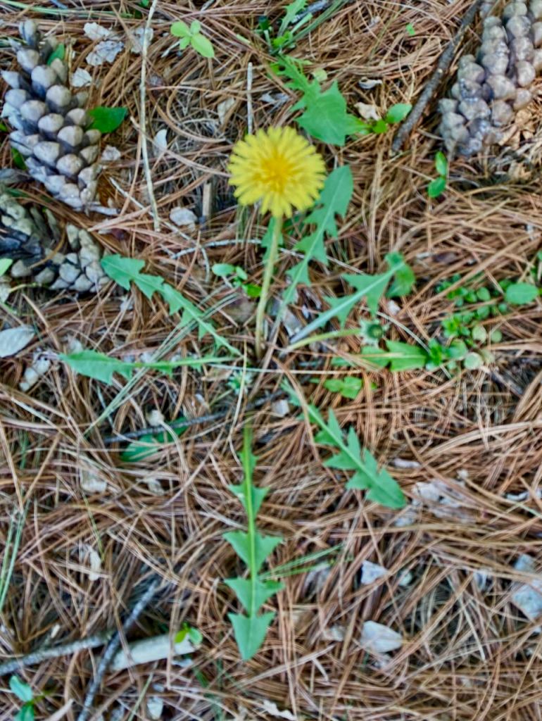 Moving around to the back yard, a flower pot that once held cosmos has come up with a crop of these little purple flowers, small enough to be violets but somehow I wasn’t convinced. Pansies were in the pot next to it last year. My garden books say four petals up and one down makes it a pansy, two petals up and three down is a violet. Two up, one down, and two sticking out to the side? Panselets?